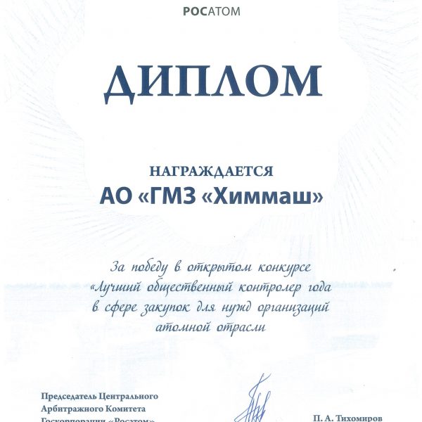 Novembre 17, 2016. JSC “GMZ “Himmash” a été déclaré le gagnant dans l’appel d’offres pour le lot” Fourniture de matériel…